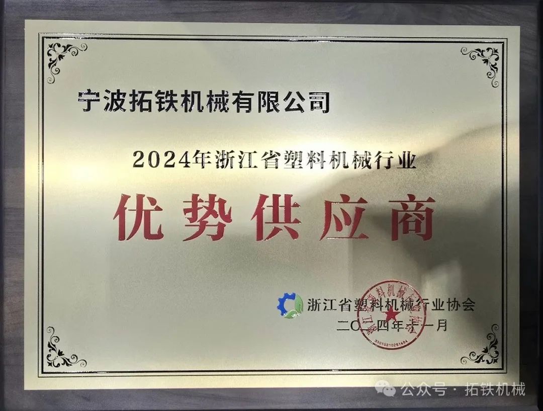 喜报!拓铁再获浙江省塑机协会“优势供应商”荣誉